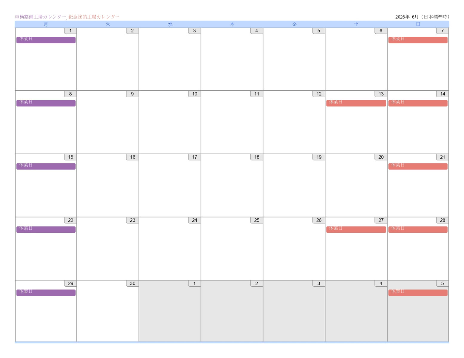 6月営業日カレンダー